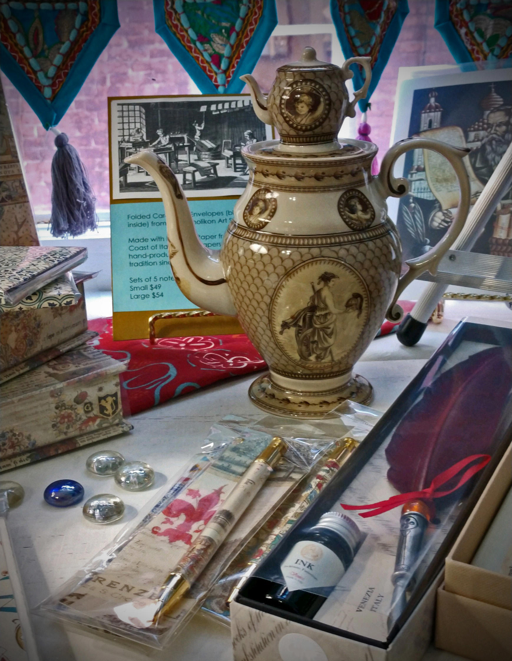 We compliment our loose-leaf tea range with offerings of distinctive multi-national lines of tea ware, linens and accessories. You will also find designer millinery and hand-crafted stationery....everything you may need to make your tea time a success! Gift certificates can be ordered in any amount.